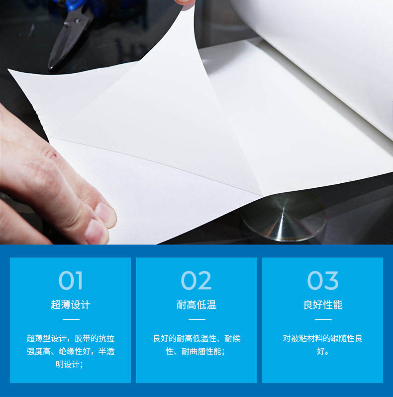 胶带厚度为0.01mm的薄双面胶带,适用于光电行业。